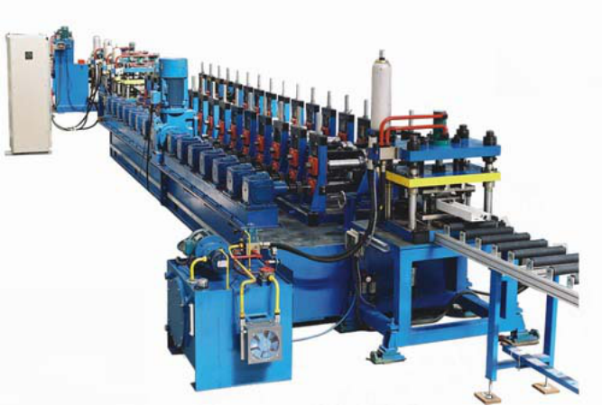 電氣罩殼自動(dòng)生產(chǎn)線該生產(chǎn)線由上料小車、開(kāi)卷機(jī)、入料導(dǎo)正、沖孔、切斷、輥壓成型機(jī)、成型剪、自動(dòng)碼垛、液壓系統(tǒng)、電氣控制系統(tǒng)組成。該生產(chǎn)線在線不停機(jī)沖孔、不停機(jī)切斷